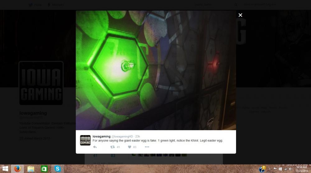 This is IowaGaming's post claiming the easter egg is legit. I used the snipe tool on my computer to capture this and the overall quality and originality of the photo is the same as it is in his post. ------ Now this is the same image, only me pointing things out in which I see why it is fake. There are purple and red hues around the green light which is evidence of photoshop or some other photo editing software was used. I don't believe a "photo detective" or scanner can pick up traces of lighting edits. I also tried looking such a thing up, but didn't find anything, however I could be wrong, but the likeliness of that is small and I'll show you why. ------ Both of these images you see below are from @The AfroNinja27 not IowaGaming. He is only showing how easy it is to recreate what we see in Iowa's original post and even though they are at different angles, both his and Iowa's are shockingly similiar which is enough to say how fishy this all is and is most definitely fake. Compare the green lights on the teleporter maps on The Giant to these and you will not see any purple or red hues around them. There is very little chance that it is a glitch or even a shader issue. I believe this isn't real and was merely just a stunt possibly for views, subs or 5 minutes under the spotlight. The video I posted above about the light flickering from green to yellow on the teleporter map is far more legit and is something we should be focusing on, not this green light on the wall that I wholeheartedly believe is fake. -