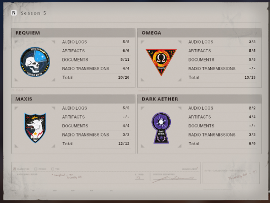 Today I was looking at what I was missing and I am also showing missing Document for season 5 but they are not showing in the documents collected but showing they are outstanding in the summary page, is this a glitch or are they still to be collected and where from. Can't find anything online about them, please help.
