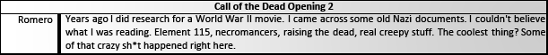 Degaldo is just a name, not a character. I mean, how am I supposed to mention it in the story? "At this point the man named Degaldo was written on the blackboard." The blackboard should be taken with a grain of salt. Since I'm not adding a section of "stuff written on the blackboard", I discard that name as it isn't important. In fact, the mission statement of this thread is to write a story on Zombies, short of giving a history on mankind in general.